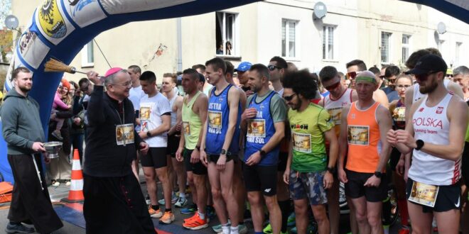 Na starcie z uczestnikami biegu, jak co roku, spotkał się bp Tadeusz Lityński, który pobłogosławił uczestników biegu i wspólnie z nimi pomodlił się o pokój na świecie. Oczywiście nie zabrakło też głośnych okrzyków: „Alleluja”. – Wyrażam wdzięczność ojcom kapucynom za tę ideę. Kilkaset osób bardzo aktywnie biegnie do pustego grobu ma wzór apostołów Piotra i Jana. Mam nadzieję, że to podtrzymuje i umacnia nie tylko wiarę, ale i kondycję biegających oraz stwarza atmosferę i klimat życzliwości w tym świątecznym czasie – mówił bp Tadeusz Lityński tuż przed rozpoczęciem biegu.