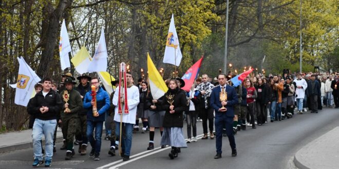 To już drugie nabożeństwo wielkanocne organizowane na ulicach Zielonej Góry w którym z roku na rok będzie udział coraz więcej osób. Młodzież w ten sposób nie tylko chce zachęcić swoich rówieśników, ale też mieszkańców w każdym wieku do odkrywania tajemnicy Zmartwychwstania. – Chcemy zanieść radość i Światło innym i pokazać, że Jezus zmartwychwstał i wciąż jest z nami, z każdym z nas – podkreśla Marta Graczyk z KSM.
