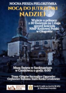 Już po raz XIX wyruszy Piesza Pielgrzymka Nocą do Jutrzenki Nadziei z Głogowa do sanktuarium Matki Bożej Jutrzenki Nadziei w Grodowcu. Pątnicy wyruszą w nocy z 30 kwietnia na 1 maja, aby skoro świt dotrzeć do sanktuarium.