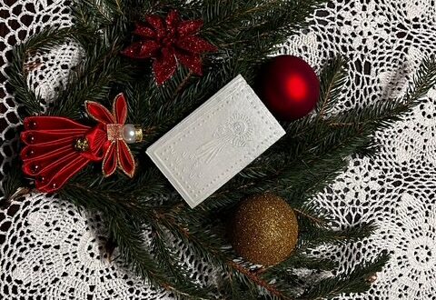 biały opłatek złożony na sianie