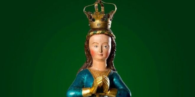 Grodowiecka parafia ma swoje korzenie najprawdopodobniej w XII wieku. W obecnym murowanym kościele znajduje się łaskami słynąca gotycka figura Maryi wykonana prawdopodobnie ok. 1590 r., która czczona jest przez pielgrzymów jako Jutrzenka Nadziei. „Reprezentuje ona typ przedstawienia Maryi, określany w sztuce jako >>Maryja Służebnica w świątyni<<. Przedstawia ona Maryję frontalnie, w lekkim kontrapoście. Ukazana jest w pozie modlitewnej, z charakterystycznym ujęciem złożenia dłoni do modlitwy. Smukłą sylwetkę Maryi okrywa długa, obcisła suknia, która spadając na stopy tworzy kilka fałd. Spod sukni wystaje część stopy lewej nogi. Długie, luźno spadające na plecy włosy oplata i podtrzymuje wałeczek. Na głowie Maryi znajduje się korona. Twarz Maryi posiada cechy charakterystyczne dla sztuki gotyckiej: wypukłe czoło, lekko wystające policzki, mały podbródek oraz migdałowe oczy z wyraźnie podkreślonymi łukami i brwiami” – czytamy na stronie grodowieckiej parafii.
